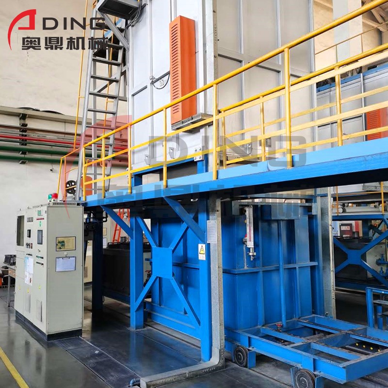 1、立式鋁合金淬火爐主要由爐殼、爐襯、加熱元件、循環(huán)風機、導流罩板、料筐升降機構、爐門及移動壓緊機構、移動式淬火水槽、溫度、動作控制系統(tǒng)等部分組成。